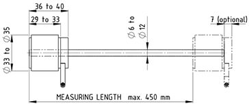 若 LVDT 的量測長度為 20 mm 或以上,標準直徑為 19 mm 或 22 mm。可以使用整合或單獨處理的電子裝置。使用整合處理的電子裝置時,感測器測頭的長度會更大。如處理電子裝置為獨立式設計的,就需要: